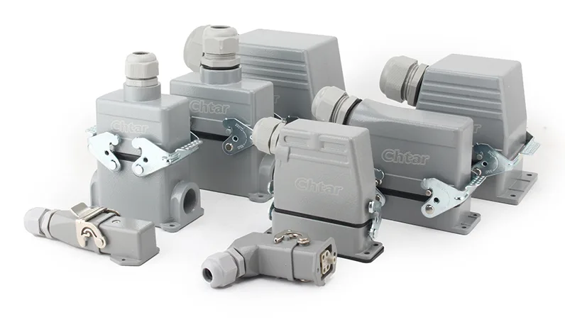 ΧΤΑΡμπορεί να παρέχει πλήρη γκάμα συνδετήρων βαρέως τύπου περιβλήματος. Υπάρχουν περιβλήματα που ταιριάζουν με HA, HE, HD, HEE και HDD και ούτω καθεξής υποδοχές σειράς βαρέως τύπου. Δουλεύουν επίσης με διαφορετικές ακίδες, όπως 3, 4, 5, 6, 10, 16, 24, 32 και 48 και ούτω καθεξής. Το εργοστάσιο μπορεί να παρέχει διαφορετικές συνδέσεις κατεύθυνσης καλωδίων.