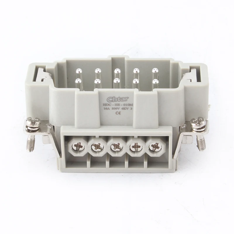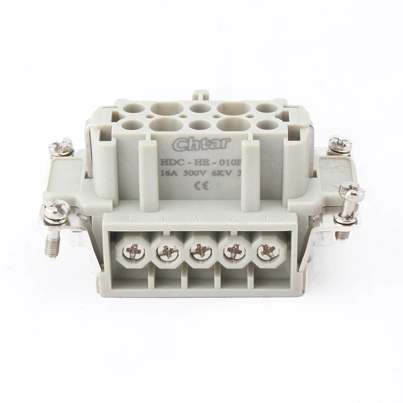 Οι υποδοχές βαρέως τύπου M F 10 Pin Insert είναι ένθετα μέρη του HDC-HE-010. Είναι θηλυκά και αρσενικά μέρη που συναρμολογούνται μαζί ως ένα σετ. Είναι ρεύμα 16Α με σύνδεση 10 καλωδίων. Λειτουργούν επίσης με το περίβλημα του συνδετήρα βαρέως τύπου H10B. Τα εξαρτήματα του ενθέτου είναι κατασκευασμένα από πλαστικό υλικό PC και οι καρφίτσες είναι από ορείχαλκο με επάργυρο. Το επάργυρο είναι πολύ καλύτερο χαρακτηριστικό σύνδεσης από άλλα υλικά επιμετάλλωσης.