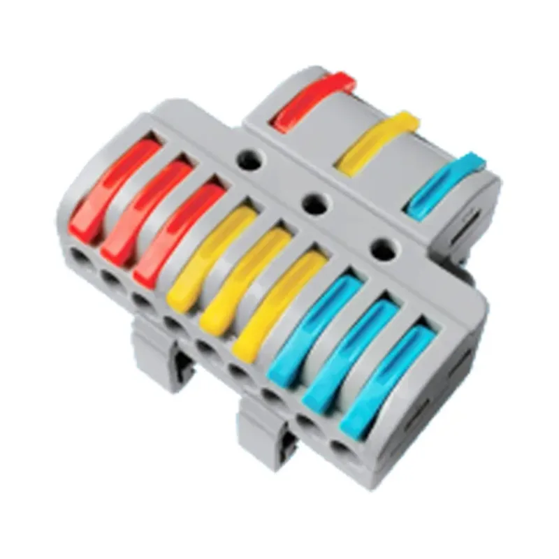 Πρόκειται για τους υψηλής ποιότητας Multi-In Multi-Out Din Rail Type Splicing Wire Quick Connectors της CHTAR, οι οποίοι χρησιμοποιούνται ευρέως για συνδέσεις καλωδίων σε φωτιστικά και βιομηχανικά συστήματα. Ξεκινώντας από τη θέση εργασίας, μπορεί να συναρμολογηθεί στη ράγα οδήγησης. Μπορεί επίσης να λειτουργήσει χωρίς το περίβλημα χωρίς τροχιά και είναι ένα επαναστατικό ηλεκτρικό αξεσουάρ ειδικά σχεδιασμένο για διανομή και σύγκλιση καλωδίων εντός του ντουλαπιού. Υιοθετεί αρθρωτό σχεδιασμό και υποστηρίζει εγκατάσταση σε τυπικές ράγες DIN. Μέσω των ενσωματωμένων μεταλλικών λωρίδων σύνδεσης υψηλής αγωγιμότητας στο εσωτερικό, επιτρέπει την ταχεία και αξιόπιστη παράλληλη κατανομή ενός ή περισσότερων καλωδίων εισόδου σε πολλαπλούς ακροδέκτες εξόδου ή τη σύγκλιση πολλαπλών καλωδίων.
