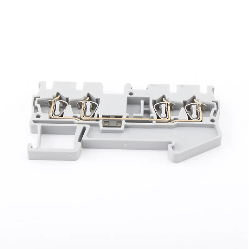 Τα μπλοκ τερματικών σιδηροτροχιών ST2.5 QUATTRO Spring Din είναι συσκευές ηλεκτρικής σύνδεσης που συνήθως τοποθετούνται σε ράγες μέσα σε ερμάρια ελέγχου ή εξοπλισμό για γρήγορη καλωδίωση και συντήρηση. Τα μπλοκ ακροδεκτών είναι συνήθως εξοπλισμένα με μονωτικά υλικά και δομές φυσικής απομόνωσης για την πρόληψη βραχυκυκλωμάτων, ηλεκτροπληξίας ή χαλαρής καλωδίωσης, ενισχύοντας έτσι την ασφάλεια του συστήματος.