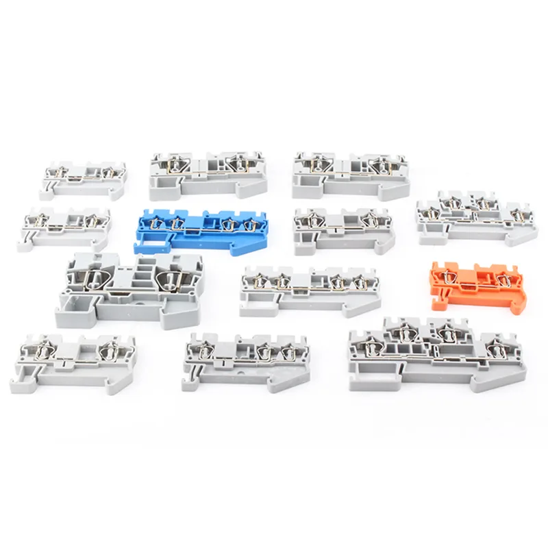 Αυτή η αξιοπιστία επεκτείνεται και στην τοποθέτηση. Το STTB2.5 Spring Din Rail Terminal Block  διαθέτει καθολικά κουμπωτά πόδια, επιτρέποντάς σας να το κάνετε κλικ σε τυπικές ράγες NS 35 (7,5 mm ή 15 mm σε ύψος) και να το αφαιρείτε εξίσου εύκολα — δεν χρειάζονται εργαλεία. Αυτό επιταχύνει δραματικά τη δημιουργία πάνελ και τις τροποποιήσεις πεδίου.