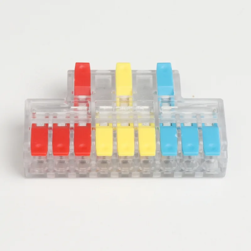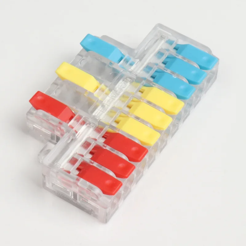 Οι ταχείας σύνδεσης καλωδίων συρμάτων δύο-σε-τεσσάρων εξόδων έχουν μικρό σχήμα από το κανονικό μας εύρος ακροδεκτών καλωδίωσης διανομής. Η μίνι έκδοση μπορεί να χρησιμοποιηθεί μέσα σε μικρές αδιάβροχες θήκες. Είναι κατασκευασμένα από χωρίσματα λαβής διαφορετικού χρώματος για να συνειδητοποιήσουν τη διαφοροποίηση της κατεύθυνσης της καλωδίωσης.