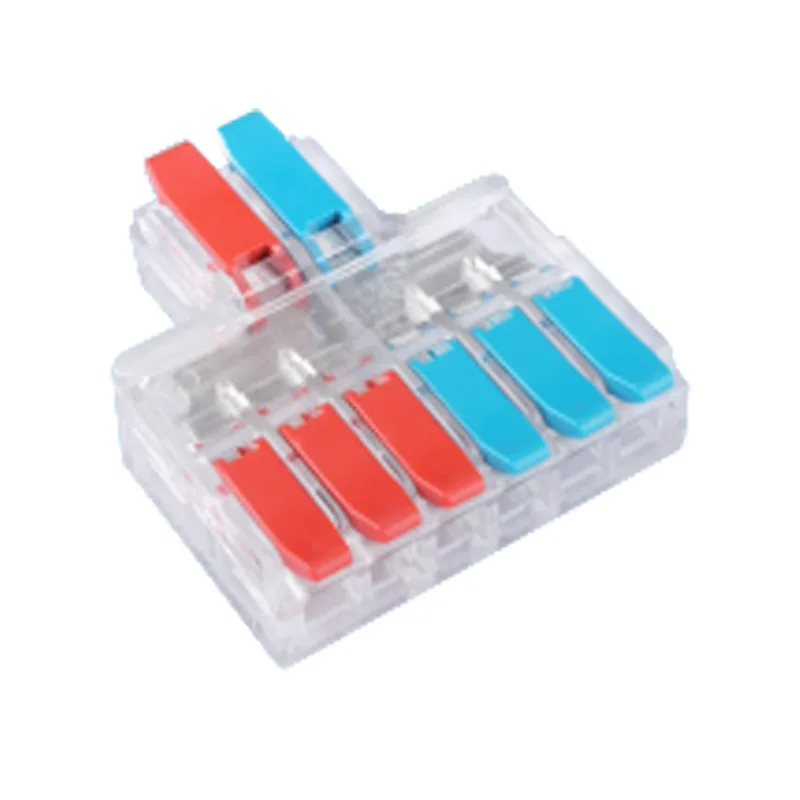 Στα σύγχρονα ηλεκτρικά συστήματα και συστήματα αυτοματισμού, οι σχέσεις σύνδεσης των κυκλωμάτων γίνονται όλο και πιο περίπλοκες και οι απλές παράλληλες γραμμές ή η μονοκατευθυντική διανομή δεν μπορούν πλέον να ανταποκριθούν στις απαιτήσεις. Οι υψηλής ποιότητας δύο-σε τέσσερις-έξοδοι συνδετήρες συρμάτων γρήγορης σύνδεσης της CHTAR, οι οποίοι είναι δομικοί σύνδεσμοι εισόδου και εξόδου πολλαπλών καλωδίων, μπορούν να αντιμετωπίσουν αυτά τα ζητήματα. Το μέγεθος των καλωδίων που συνδέει κυμαίνεται από 0,5 mm² έως 6 mm². Αυτή η σειρά συνδέει καλώδια μεγάλου μεγέθους, με μέγιστο μέγεθος 6 mm². Υπάρχουν δύο επιλογές: 2P και 3P. Η κύρια γραμμή διαμορφώνεται με 2P και 3P και στη συνέχεια διακλαδίζεται σε δύο ή τρεις βοηθητικές γραμμές. Ξεπερνά μια μεμονωμένη λειτουργία, επιτρέποντας στους μηχανικούς να επιτύχουν περιττή παράλληλη σύνδεση διπλών τροφοδοτικών, ανεξάρτητο διαχωρισμό σήματος ή σύγκλιση και ενοποίηση διαφορετικών γραμμών σε έναν μόνο φυσικό κόμβο. Αυτό ισοδυναμεί με τη δημιουργία ενός τρισδιάστατου συγκοινωνιακού κόμβου στο «σταυροδρόμι» του κυκλώματος, καθιστώντας δυνατή τη μετάδοση ενέργειας και σημάτων!